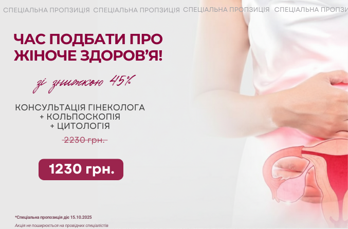 Спеціальна пропозиція!Консультація гінеколога + Кольпоскопія + Цитологія 2230 грн. = 1230 грн.